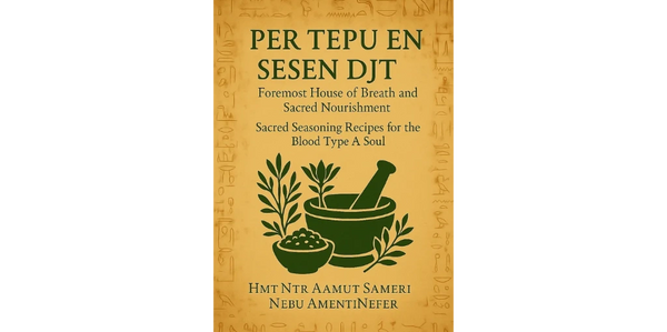 Per Tepu en Sesen Djt is a sacred Kemetic cookbook offering 14 Blood Type A that's aligned seasoning blends designed to nourish the body-temple through breath, ritual, and ancestral remembrance. Each blend honors the soul’s design, bringing sacred composition back to everyday food.